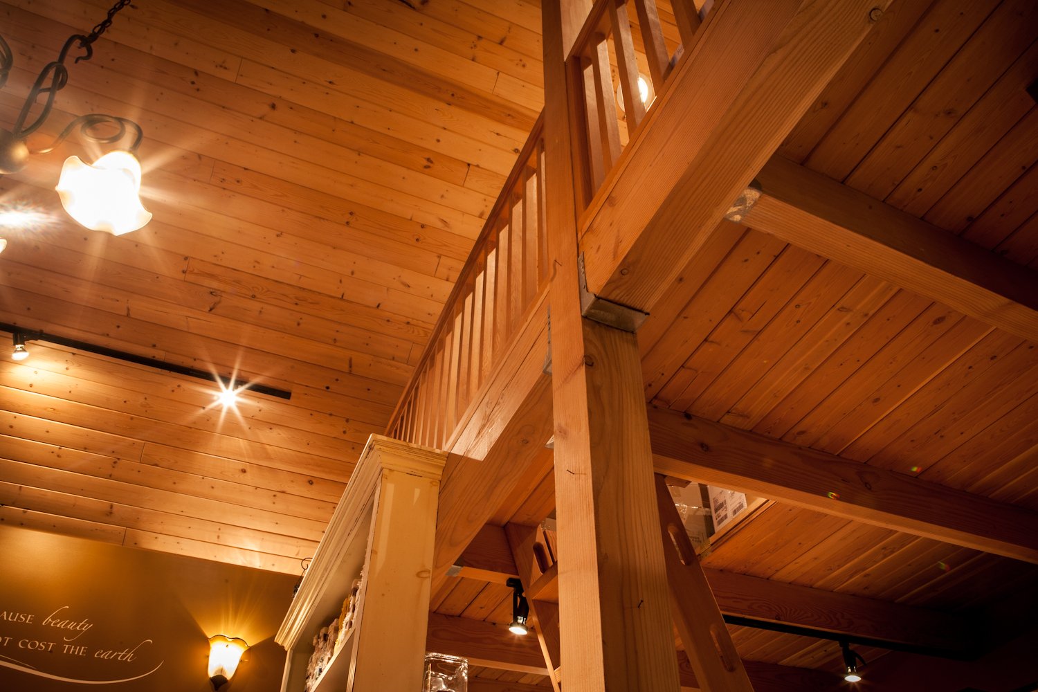 Custom-built sliding garage doors open along the main elevation, allowing the storefront to be fully opened in fair weather and creating a direct relationship between the interior and the porch.